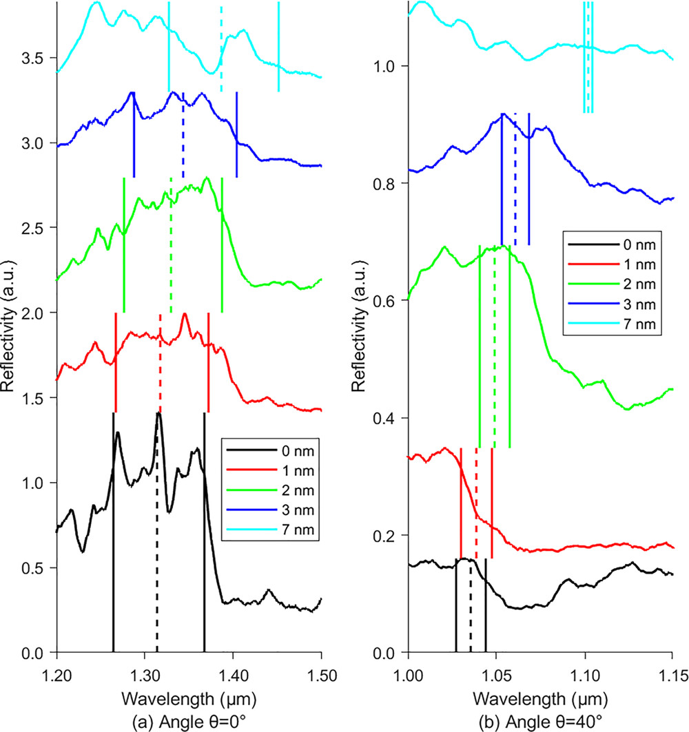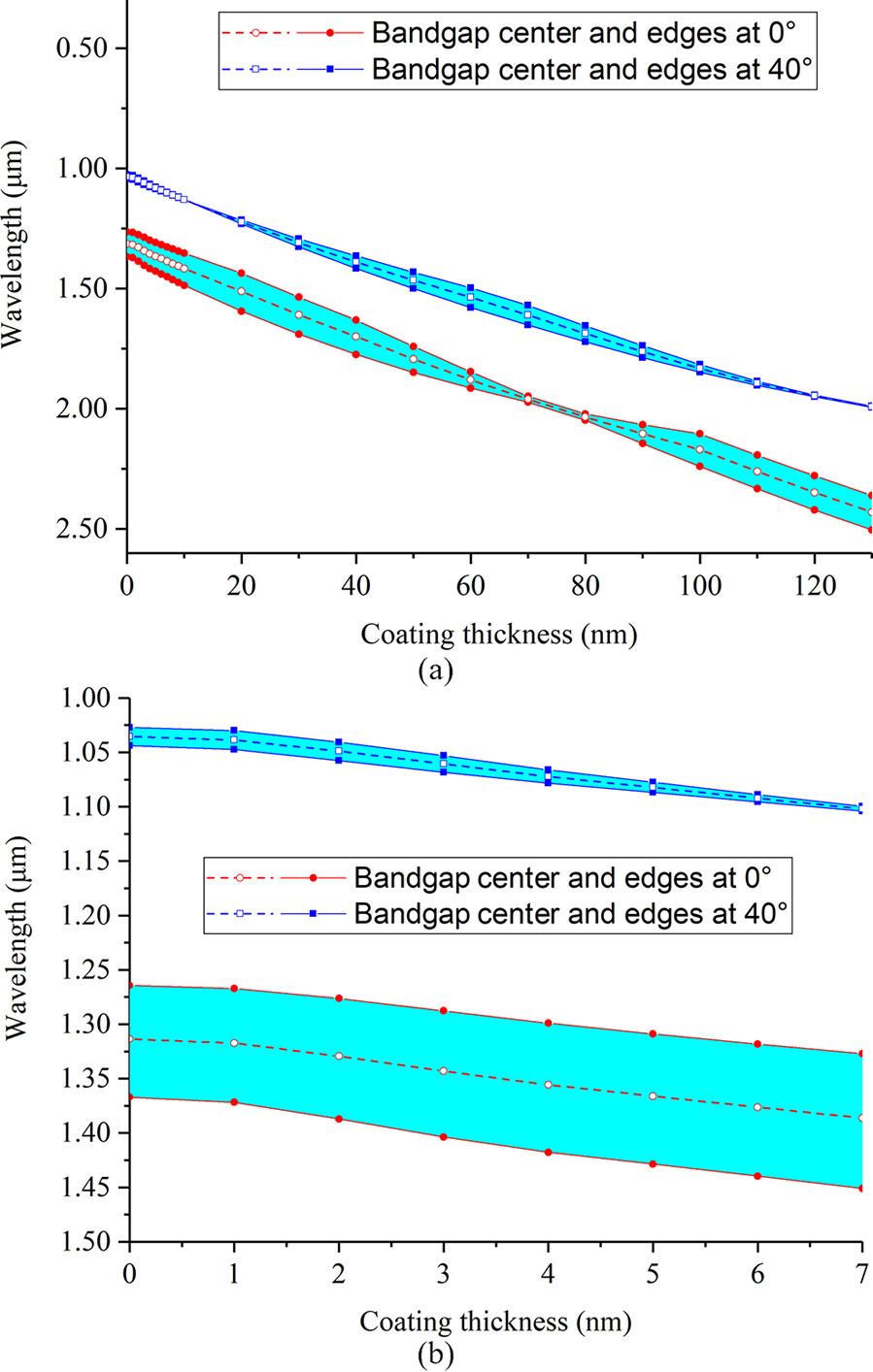 reflectivity at 0˚ and 40˚ Wave bandgap at angles and thicknesses and, cross